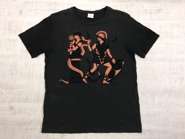 > ザラ ZARA レトロ モード 古代ギリシャ風 グラフィック フロッキープリント ビッグシルエット 半袖Tシャツ レディース L 黒