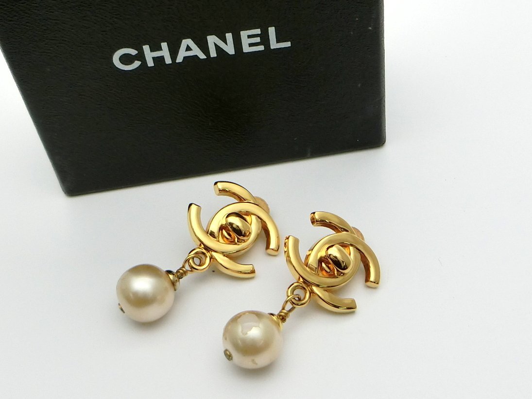 > CHANEL 96A フェイクパール ココマーク ゴールド イヤリング アクセサリー 装飾品 シャネル 1円~ N0413