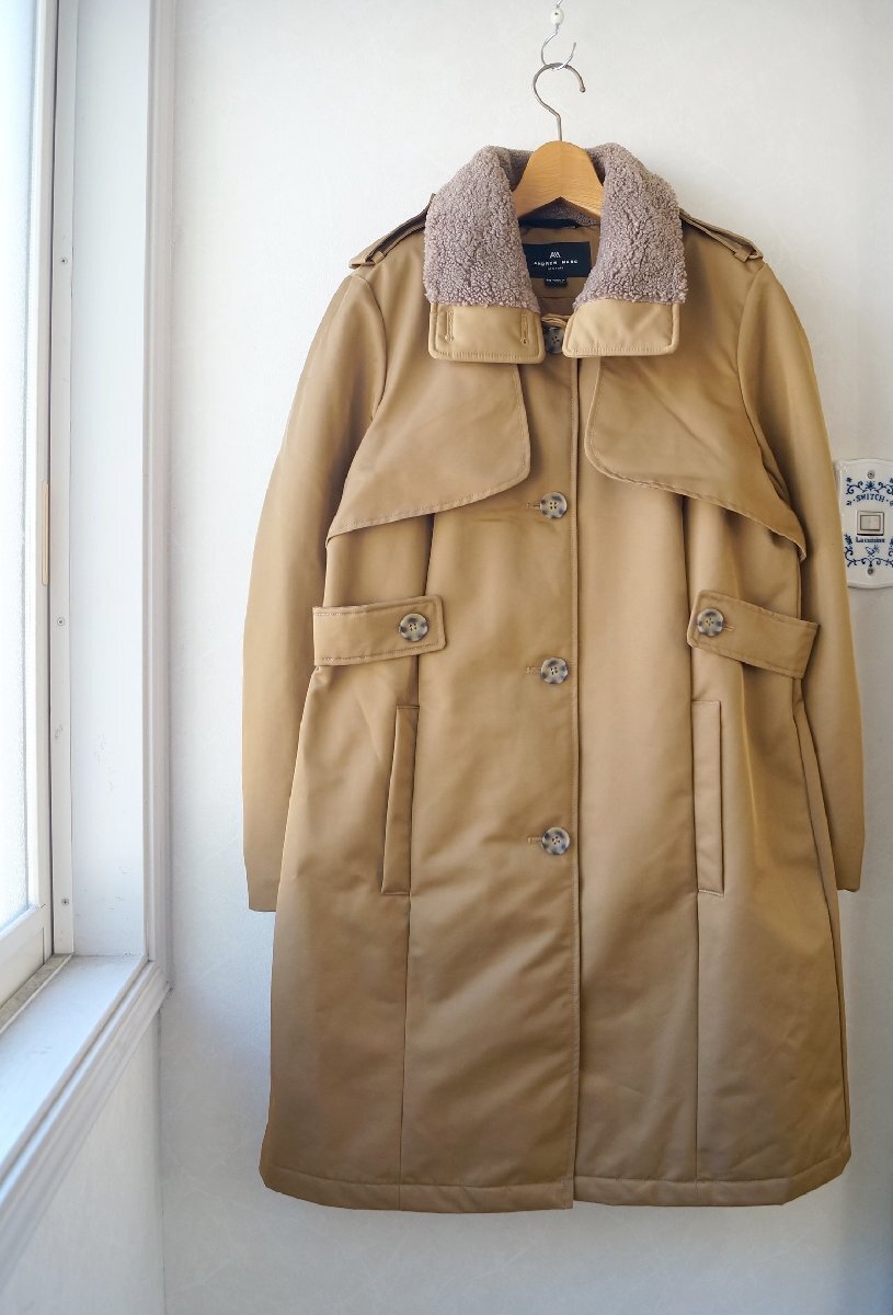 > ★ANDREW MARC(アンデュリューマーク)*秋冬 暖か 中綿入り トレンチ風ボア衿コート 茶 M* 古着のgplus広島2510t4