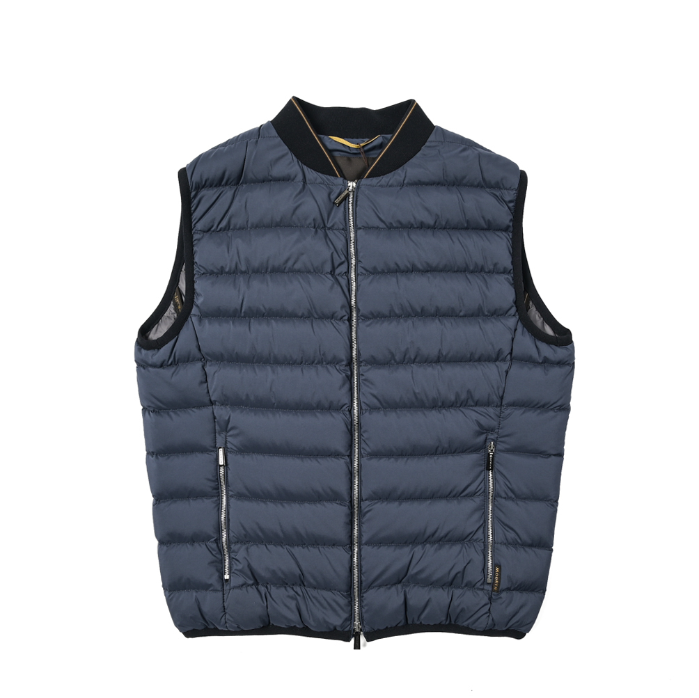 - 厳選 新着 新品 ムーレー MOORER VALMORE-S3 ダウンベスト リブカラー ストレッチ 秋冬 ウルトラライトアウター ダークブルー 400269
