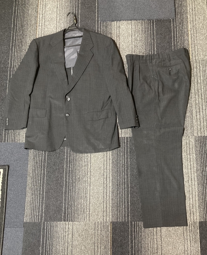 > 暑がり用の方、夏用 スーツ 上下 大きさ:身長 約 180cm 、ウエスト 約 92cm、 股下 約 83cm 中古