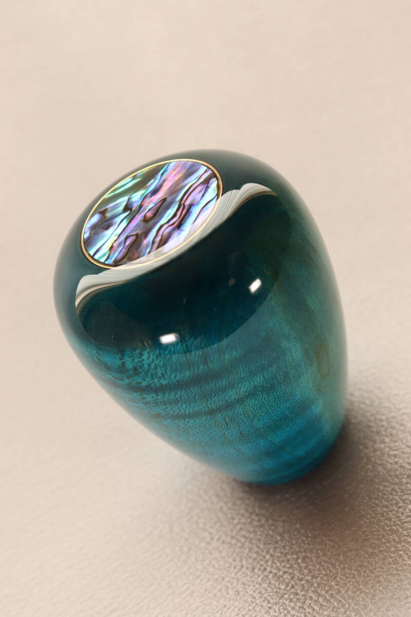 - 螺鈿シフトノブ「パウアシェル」/「楓」ブルー着色 ショートサイズ ウレタン塗装