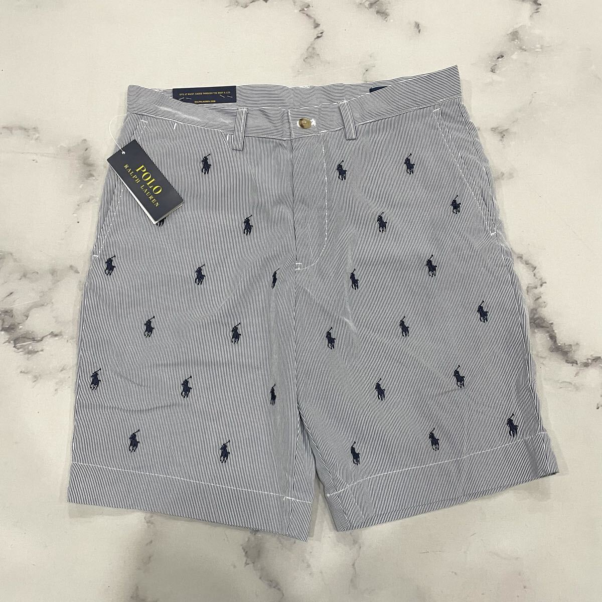 > G ○ 未使用/ 定価14,000円 '国内正規品' POLO RALPH LAUREN ラルフローレン ポニー刺繍 ショート/ハーフパンツ 30 メンズ ボトムス ブルー