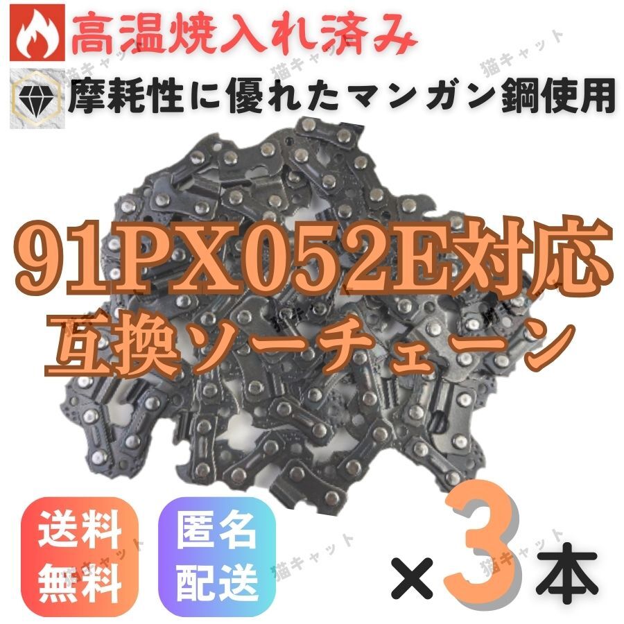 - 【3本】チェーンソー 91PX-52E 91VXL-52E H35-52E 63PM3-52 互換替刃 ソーチェーン オレゴン 91PX52E ガイドバー 14インチ 35センチバー用