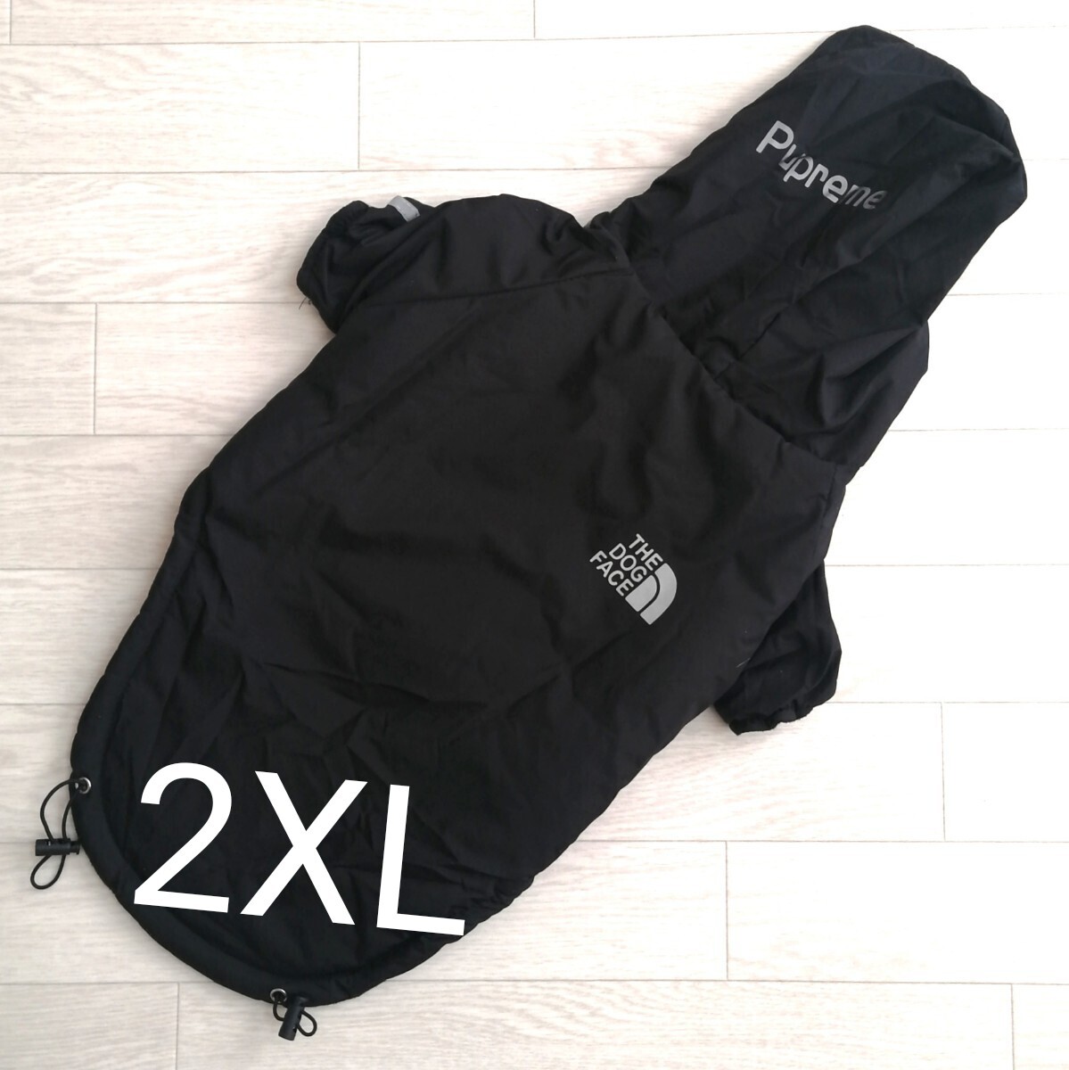 - 新品 犬服 BLK 2XL わんちゃんのパーカー ドッグフェイスウインドブレーカー裏地はフリースでやわらかい着心地