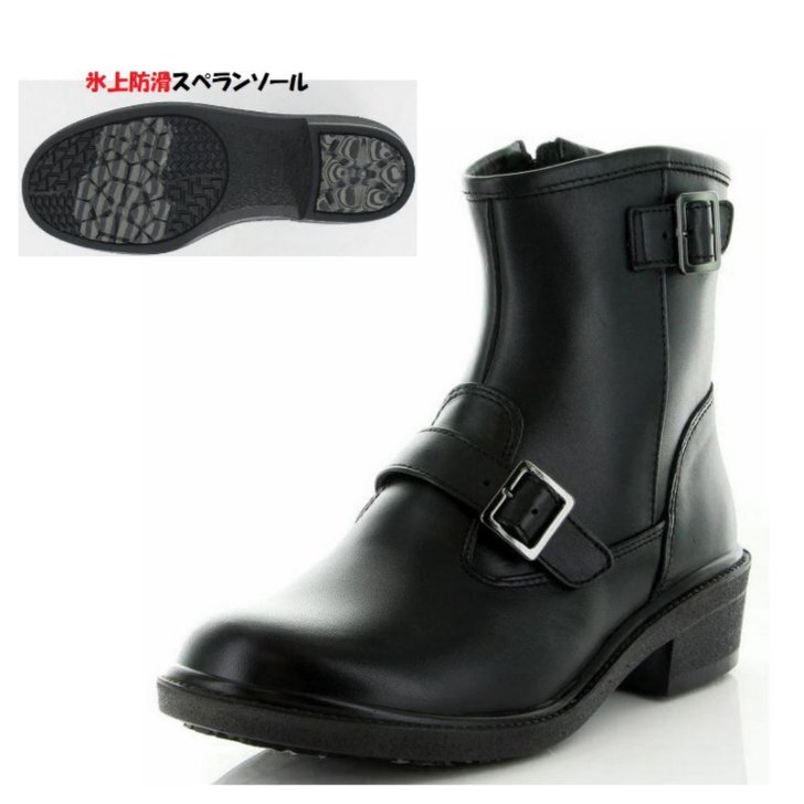 > アイスバーンは得意です 23.0 ムーンスター スポルス SP5263NSR 黒 婦人 レディース 撥水 防滑底 幅広4E 日本製 牛革 エンジニア ブーツ