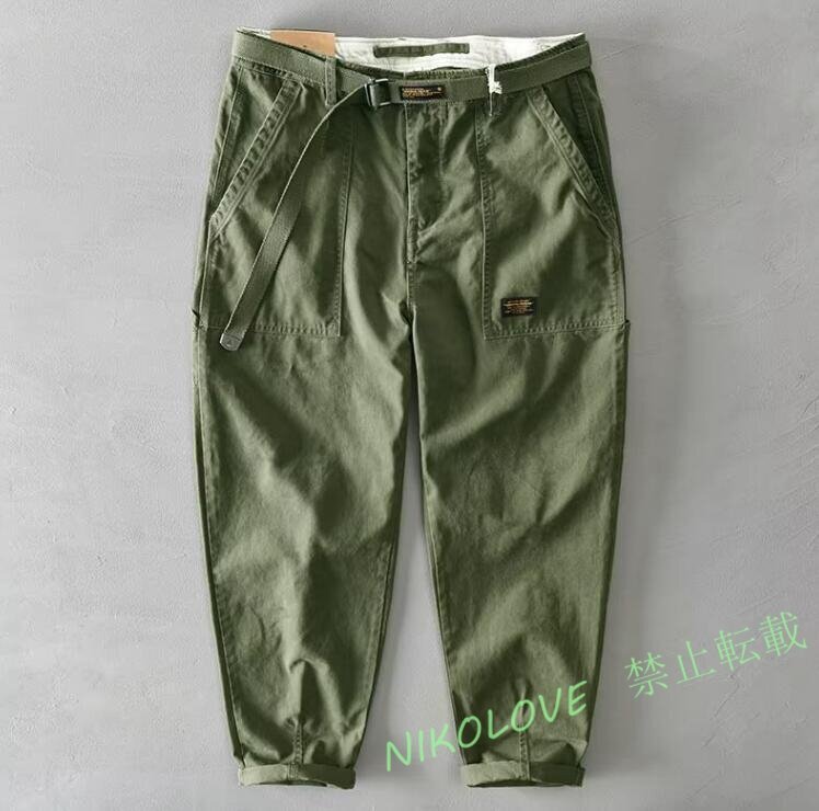 - 新品メンズカーゴパンツ ワイドパンツ チノパン コットンズボン 無地 ワークパンツ ロング カジュアル ボトムス 綿 ミリタリーグリーン