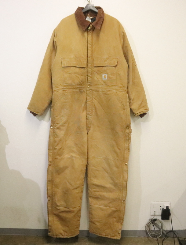 - S903 90sビンテージ Carhartt カーハート つなぎ オールインワン ダック USA製■1990年代製 表記W50サイズ ブラウン ワーク 古着 アメカジ