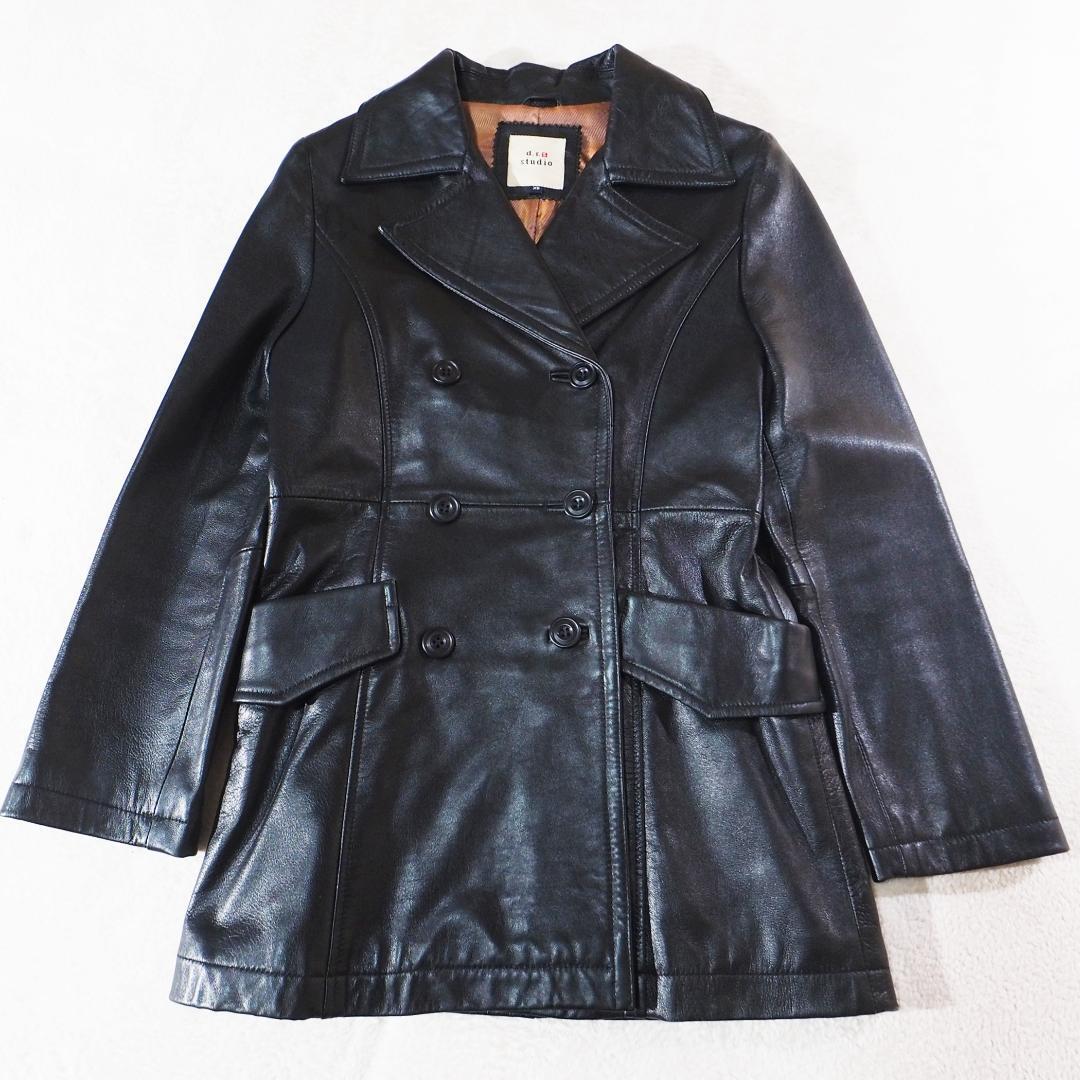 - d.r.s studio レザーコート 本革 ブラック トレンチ ピーコート ジャケット レディース