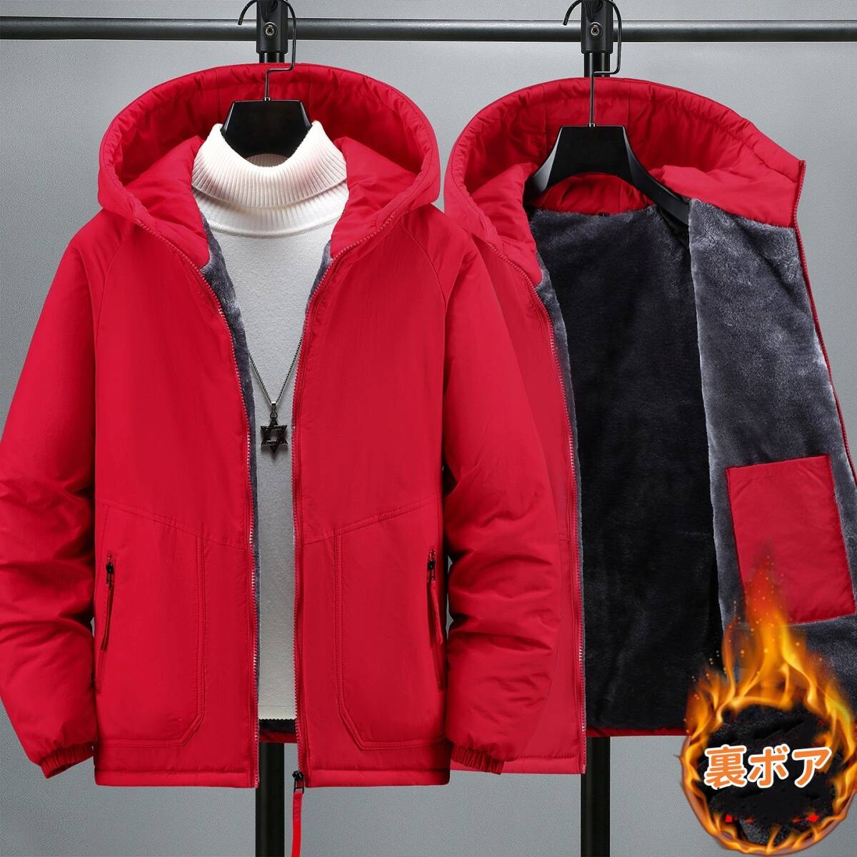 - 裏フリース ジャケット マウンテンパーカー 裏ボア 裏起毛 新品*メンズ ジャンパー ブルゾン アウター【Z621】レッド XL