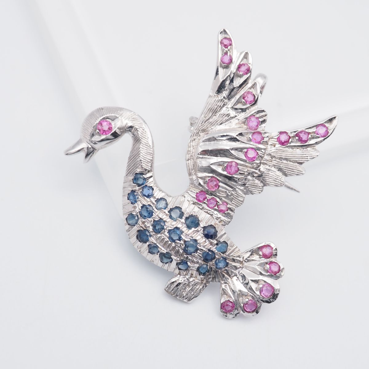 - H567 サファイア? ルビー? スピネル? ブローチ バード デザイン シルバー