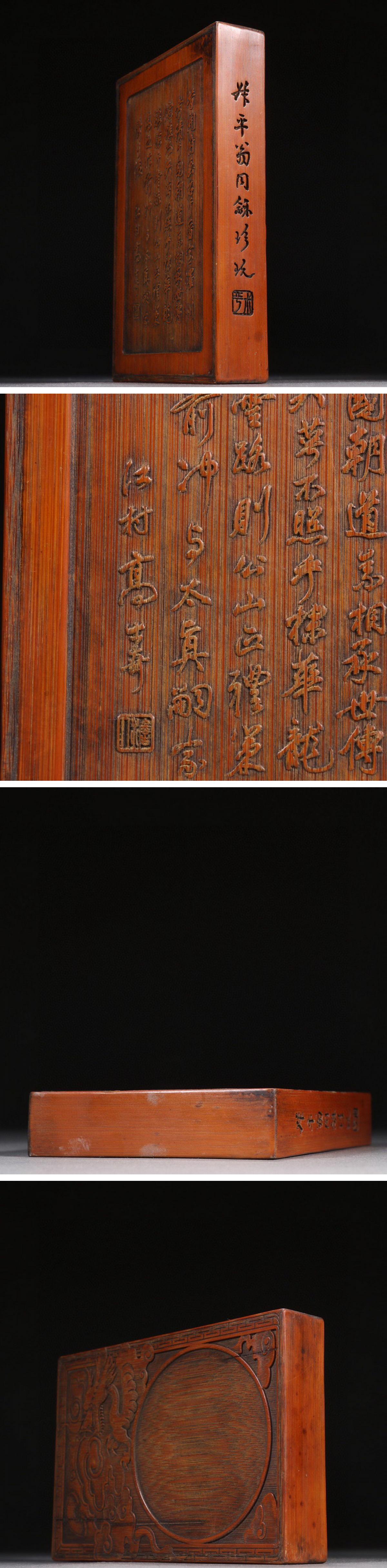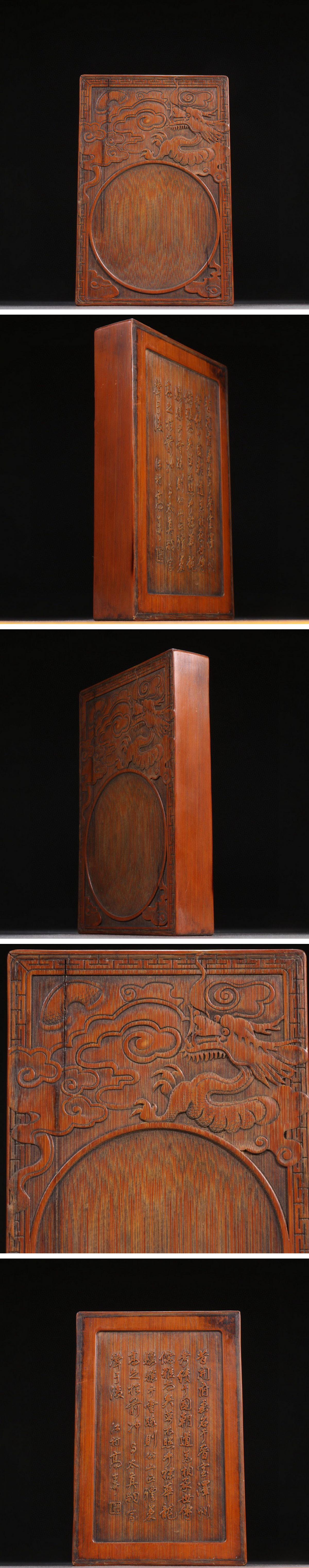 > 【清】某有名オークション購入 清時代 古竹彫り 雲龍漢詩紋文房硯 材質保証 当時物保証 古置物 古擺件 古美術 時代コレクション7L10-MD