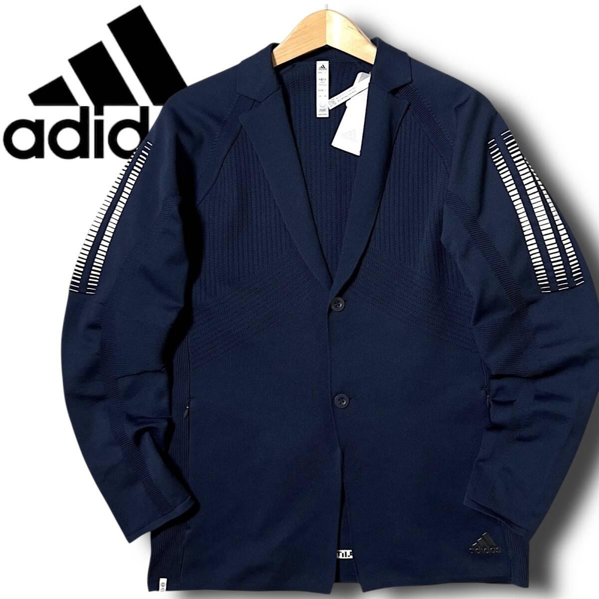 > 新品 adidas golf アディダス ゴルフ 定価2.2万 吸汗速乾 プライムニット ストレッチ テーラードジャケット 2XL ネイビー HG1664 B8504