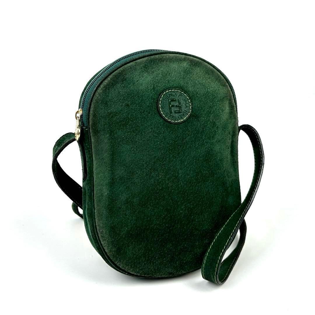 - 【美品】FENDI フェンディ ショルダーバッグ FF ゴールド金具 ポシェット 斜め掛け スエード レザー 緑色 グリーン フォーマル 男女兼用