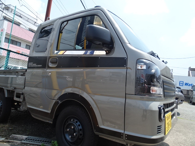 - スーパー キャリイ キャリィトラック標準 DA16T 鏡面ステンレス メッキアッパーサイド ドアモール 左右 ガーニッシュ サイドメッキ パネル
