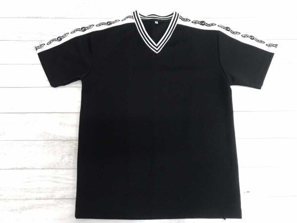 - オールド ネオグランジ やんちゃ系 古着 ショルダーラインVネック ジャージー 半袖Tシャツ メンズ ポリエステル100% M 黒 白