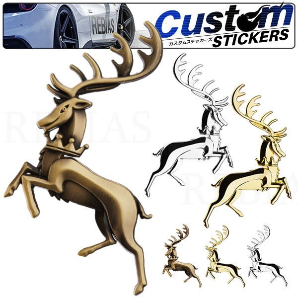 - 送料無料 トナカイ エンブレム 【右向き ゴールド】 動物 可愛い 北欧 カーステッカー 立体 3D デカール バイク