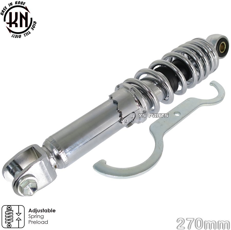 - KNローダウンリアショック270mm銀レッツ2[CA1PA/CA1KA]レッツ4[CA41A/CA43A/CA45A/CA46A]等流用[5段階プリロード調整/10mm変換カラー付]