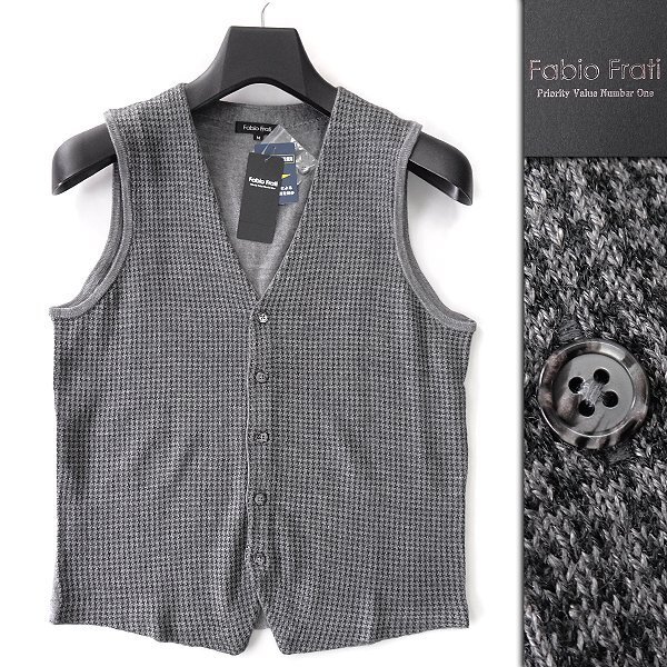 - 新品 ファビオフラーティ 抗ピル 千鳥柄 ウール混 ニット ベスト 2L 灰 【SW22-0853_3_2L】 洗濯可 静電気防止 FABIO FRATI 秋冬 メンズ