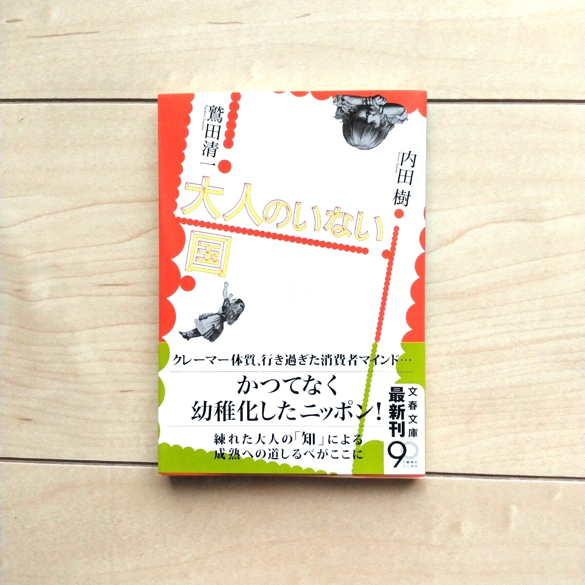 - ■『大人のいない国~嘗てなく幼稚化したニッポン!』内田樹/鷲田清一共著。2013年初版カバー帯。文春文庫。株式会社文藝春秋発行。