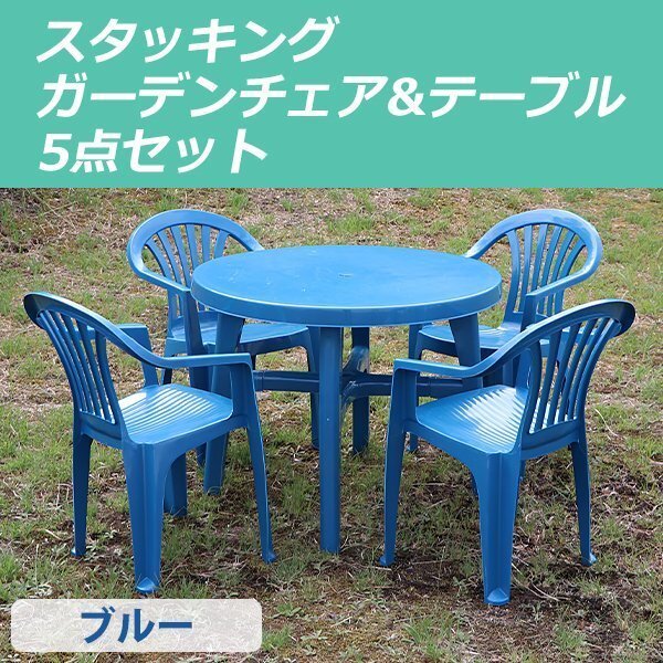 - 送料無料 ガーデンチェア ガーデンテーブル 5点セット ガーデンセット ポリプロピレン製 PP ブルー ガーデンテーブル&チェアー4脚 軽量