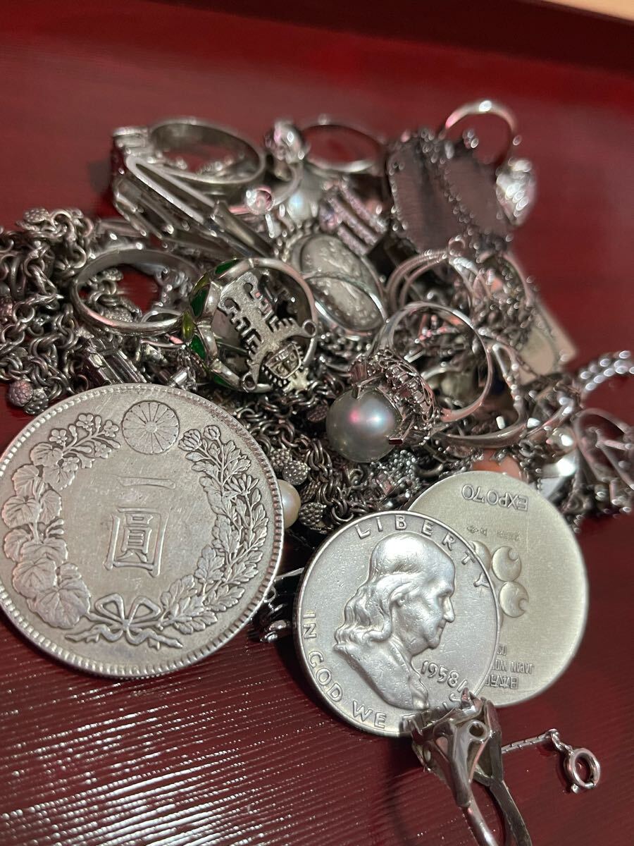 - 銀製品まとめ アクセサリー コイン 造幣局 シルバー 全刻印有 925 SILVER SV 刻印 色石 銀貨 カラーストーン 指輪 約268.0g