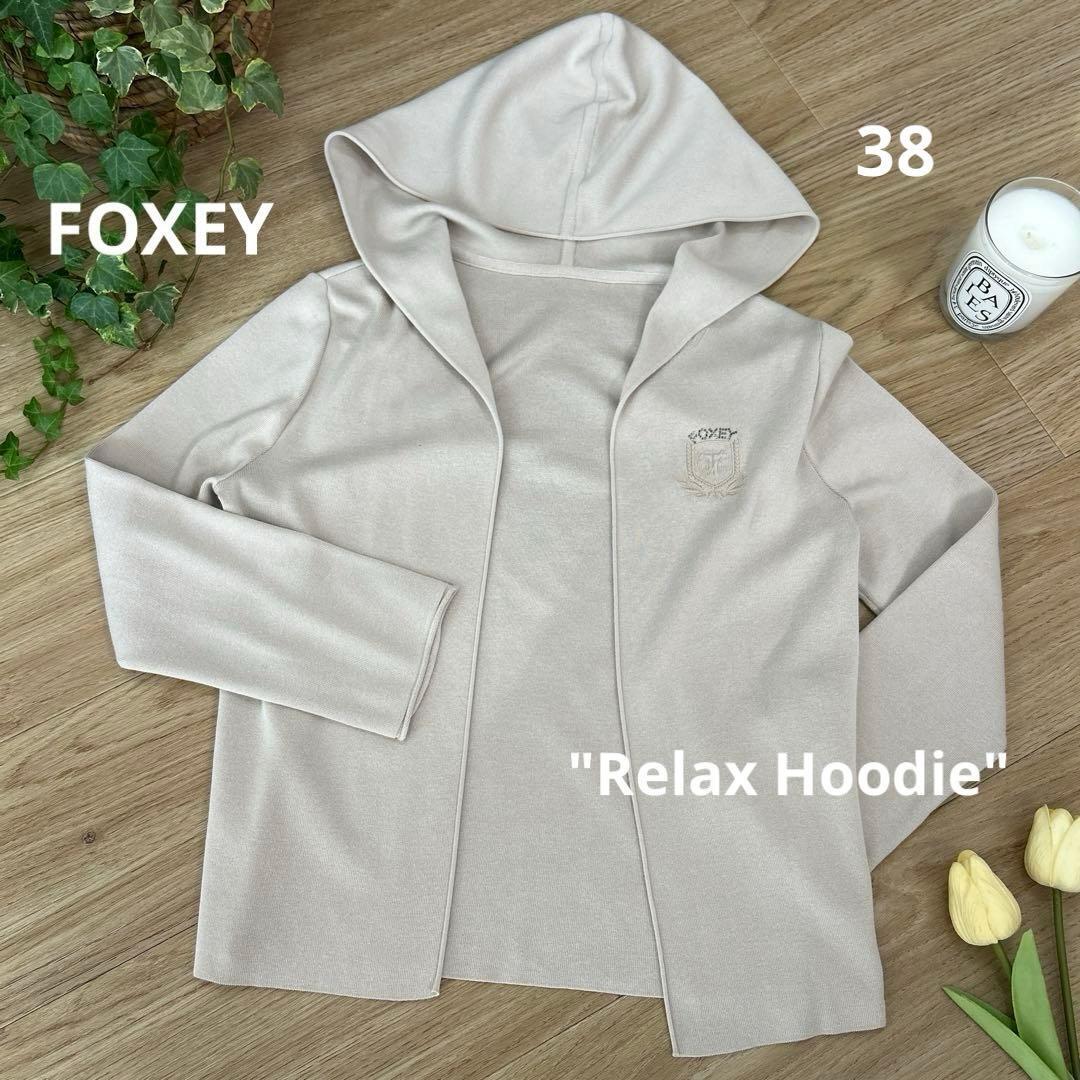 - 送料無料 FOXEY フォクシー リラックスフーディ 38 フード付カーディガン エンブレム