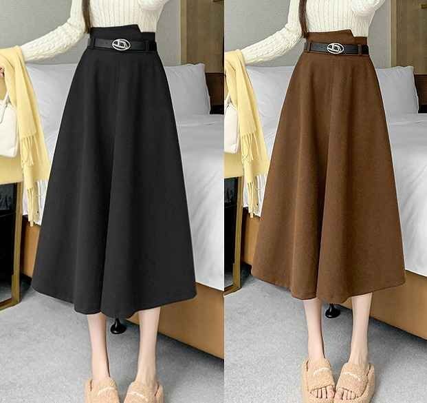 - ひざ丈スカート フリル シンプル カジュアル 無地 ボトムス 秋冬【大きいサイズあり】 XL ブラウン