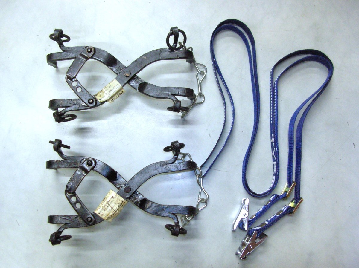 - ビンテージ品★低山の登山にお勧め【4本X型アイゼン&チロリア・アイゼンバンド】