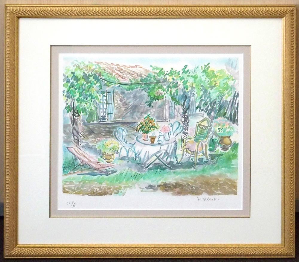 - 【最終値下げです】バレンチ /庭先の風景/ガーデン/テラス/グリーン/経年による退色、シミ、額に打コン、スレ等有り/真作保証/ENCHANTE