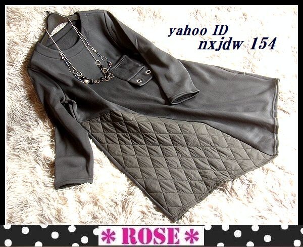 > ◆Rose◇ゆったりワンサイズ・キルトアクセント♪異素材使いが素敵・大人シャープなチュニック/チャコール