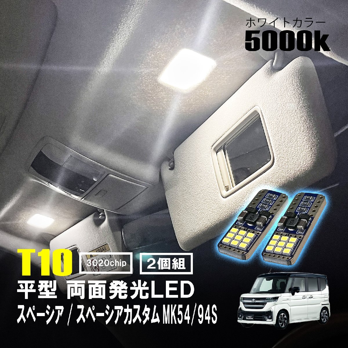 - スペーシア スペーシアカスタム MK54 MK94S LED ルームランプ T10 平型 フラット ルームライト 室内灯 LEDバルブ 12V 24V 5000k 薄型 板型