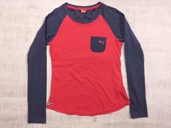 > プーマ PUMA スポーツ Y2K 配色切替 ラグラン袖 ロンT タイト長袖Tシャツ カットソー トップス レディース S ピンク/紺