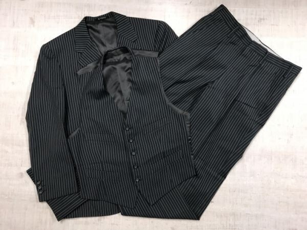 - UENO 上野 国産レトロ トラッド ストライプ 背抜き センターベント 3ピース 2つボタン シングル スーツ 上下セットアップ メンズ グレー