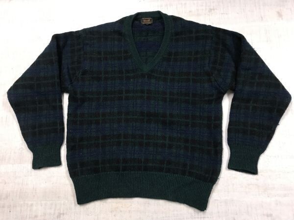 - Botany 500 オールド レトロ 90s 香港製 古着 チェック ブラックウォッチ チェック トラッド ニット セーター メンズ ウール100% L 緑