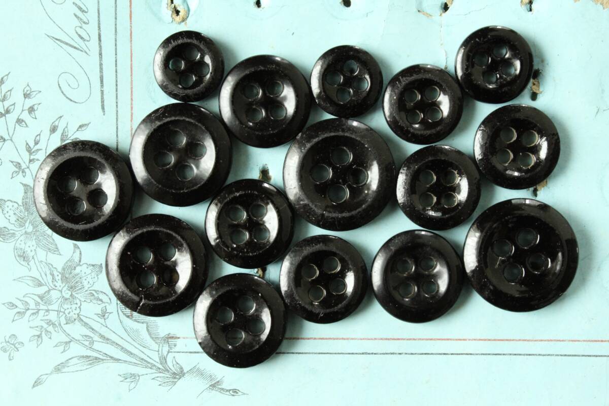 - 即決 4穴 ガラスボタン 16個 φ10~16mm ブラック 黒 素材 ハンドメイドパーツ リメイク フランス輸入