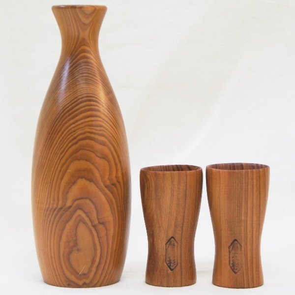 - 中古【屋久杉製 酒器セット】徳利×1本 盃×2客 酒器揃え 屋久島 木目