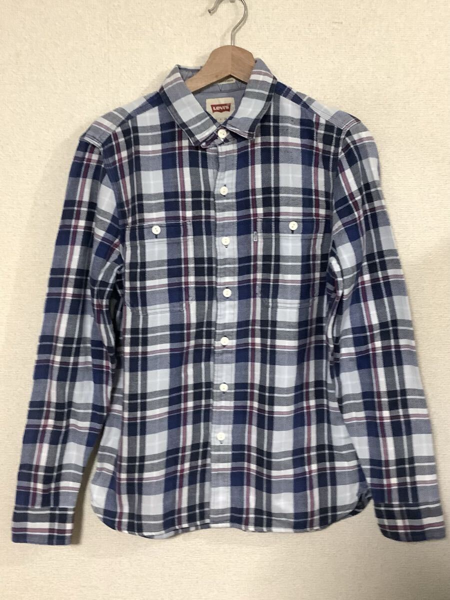 - levi's リーバイス チェック 長袖シャツ ネルシャツ ブルー カジュアル アメカジ ビンテージ メンズ S