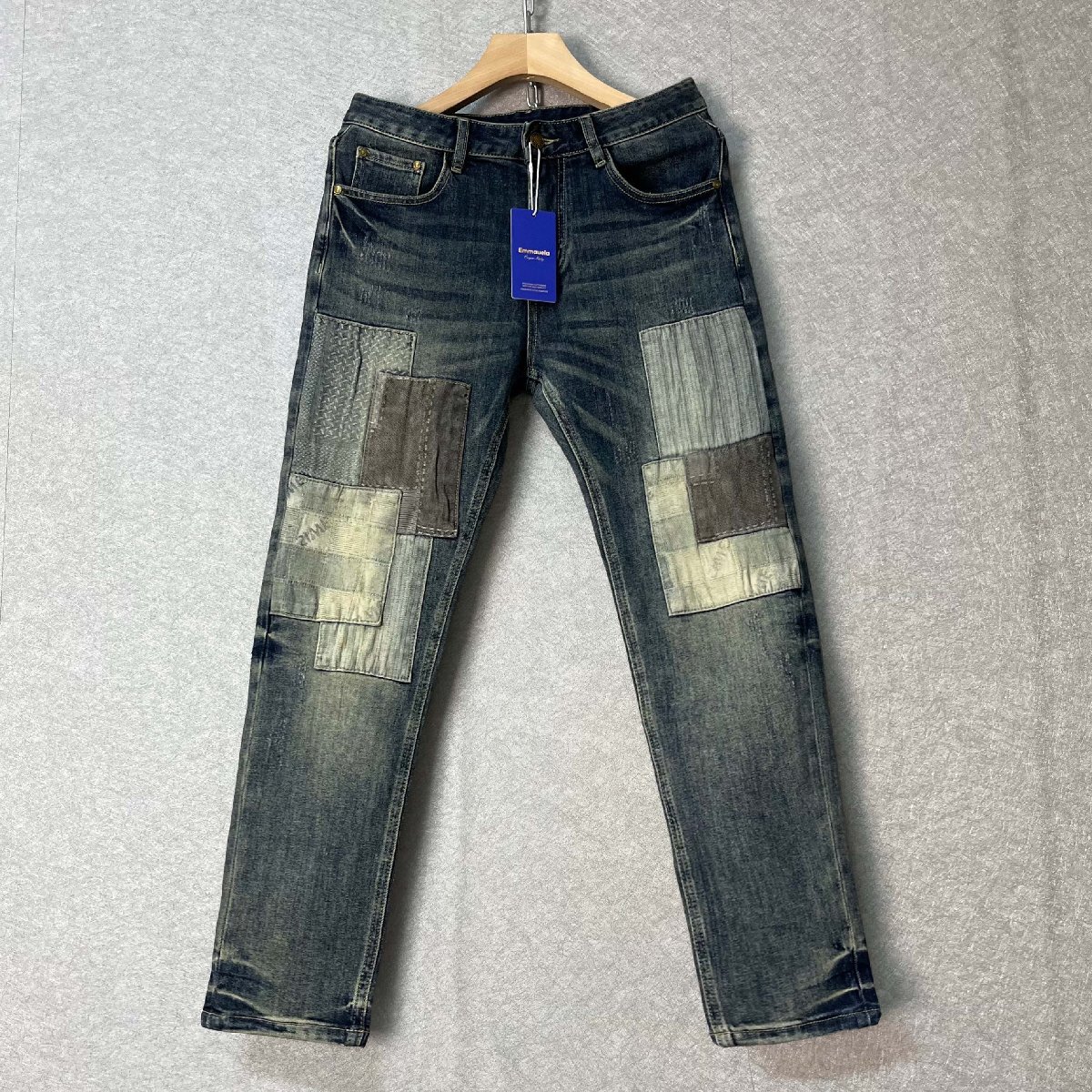 > 個性・デニムパンツ 定価4万◆Emmauela・イタリア・ミラノ発◆コットン混 快適 パッチワーク 色落ち ジーンズ オシャレ ズボン サイズ29