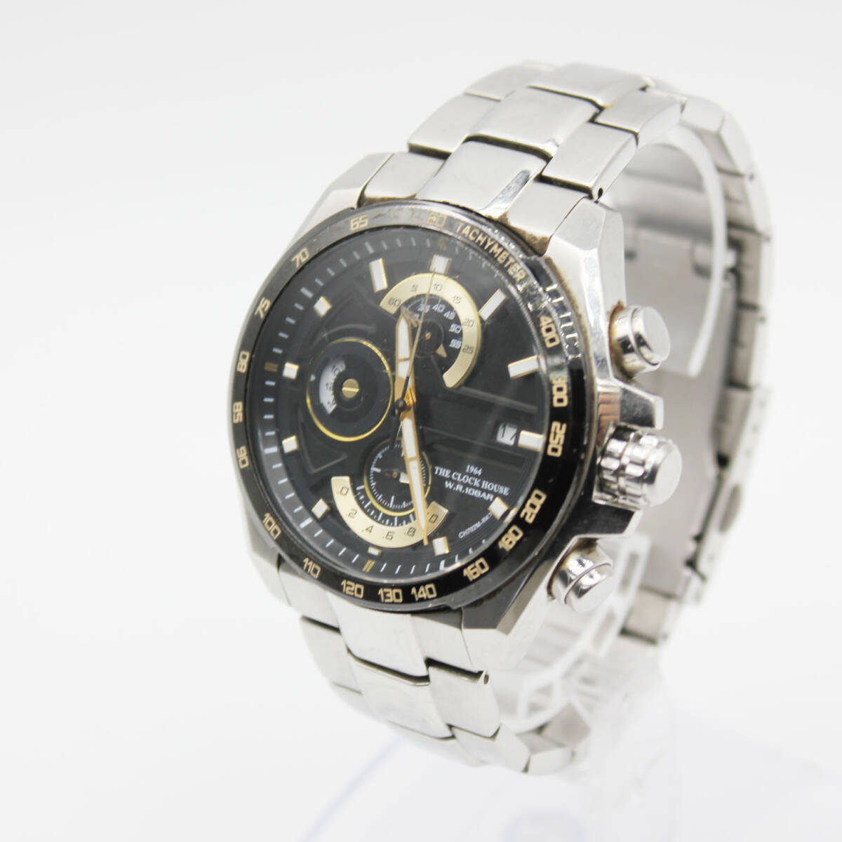 > W251031-22 THE CLOCK HOUSE クロックハウス CH702M メンズ腕時計 クォーツ クロノグラフ デイト 稼働品 文字盤ブラック シルバー