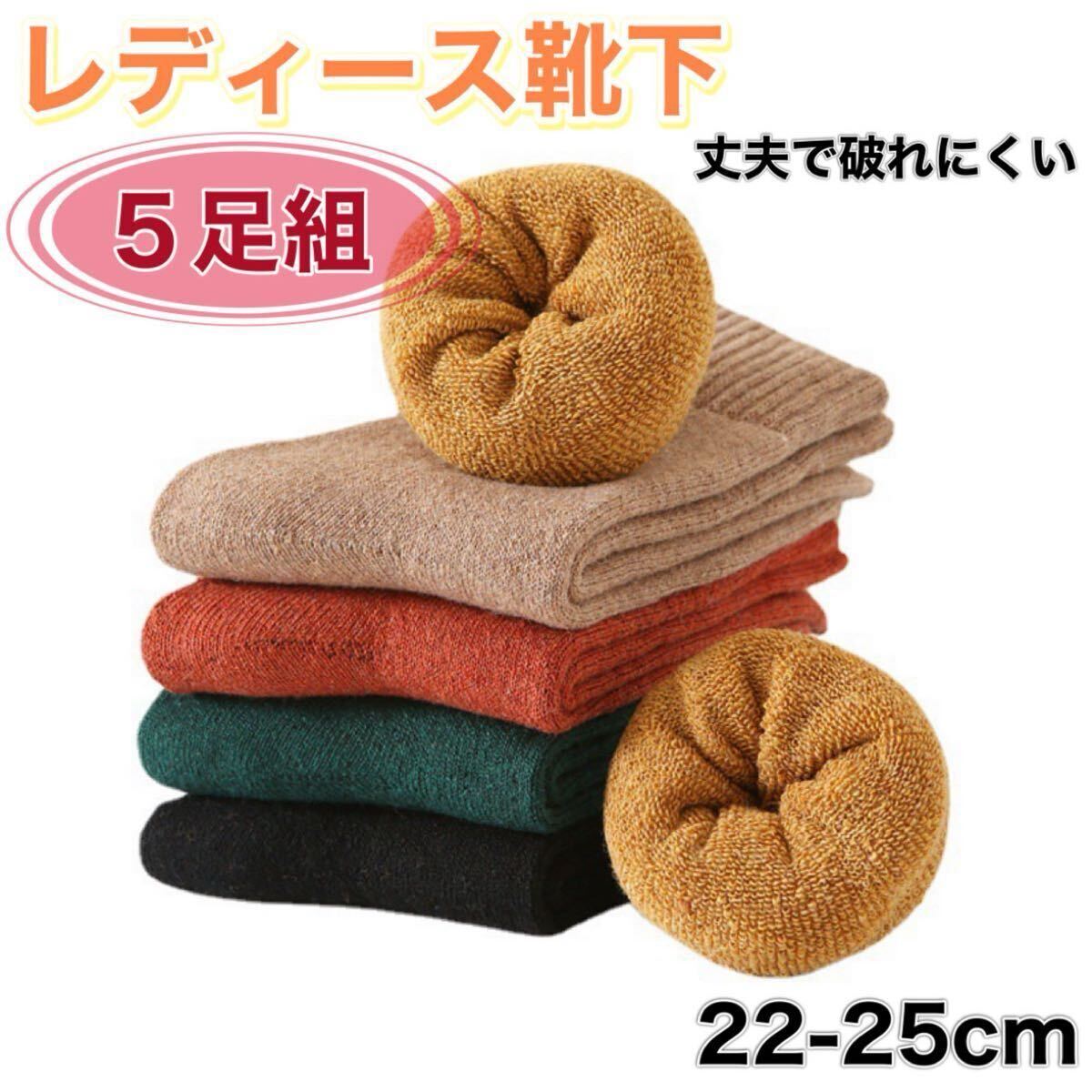 - レディース靴下 5足組 22-25cm 丈夫で破れにくい 暖かい 10057