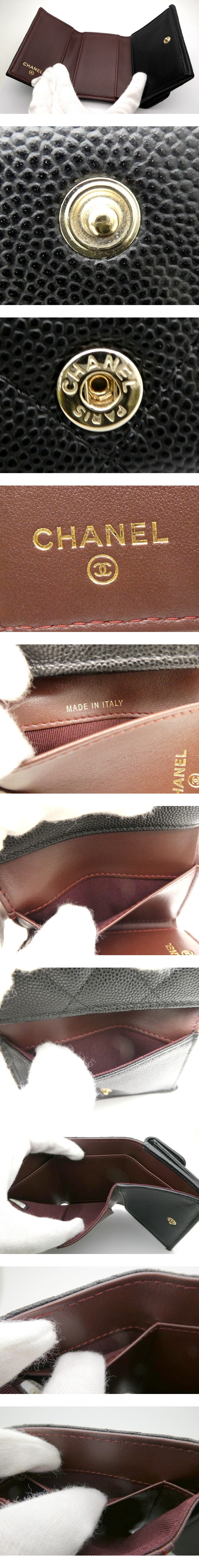 - CHANEL マトラッセ キャビアスキン ココマーク ブラック シャネル 三つ折り財布 ミニ財布 ブランド 服飾小物 1円~ K0410
