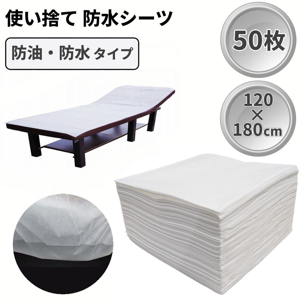 - 【vaps_7】使い捨て 防水シーツ 防油 防水 50枚 120×180cm SMS不織布 穴なし ベッドシーツ エステ サロン 美容院 マッサージ 送込