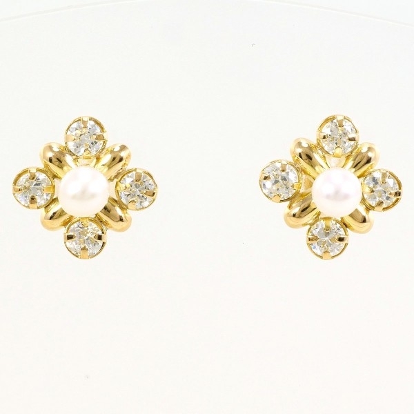 K18YG ピアス イミテーションパール ジルコニア 総重量約0.7g 中古 美品 送料無料☆0338