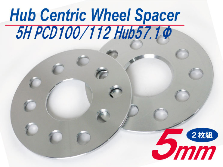 > 【フォルクスワーゲン用 5mm】アルミ鍛造 スペーサー 2枚組/5H PCD100&112 57.1φ /ニュービートル、ザ・ビートル等