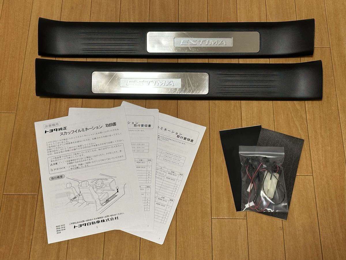 > 美品 トヨタ 純正 オプション エスティマ ESTIMA スカッフイルミネーション ロゴ ブラック 塗装品 要領書付 ACR50 55 GSR50 LED ブルー