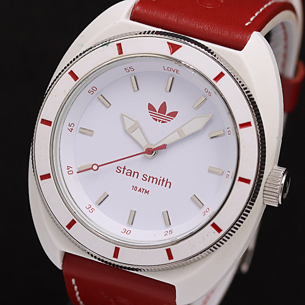 > 1円 稼働 アディダス スタンスミス ADH9088 QZ ホワイト文字盤 メンズ腕時計 0011000 10MGT MST
