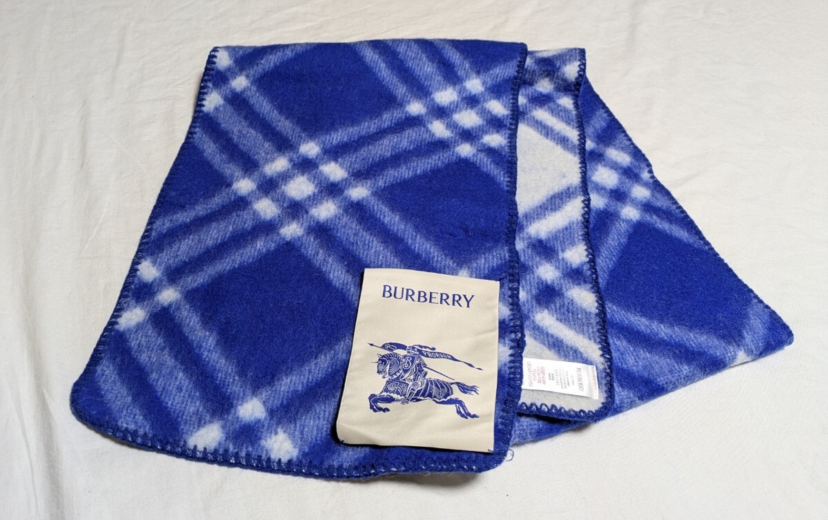 > 4794送料500円 BURBERRY バーバリー チェック ウール ストール マフラー ブルー ホワイト系 ステッチ 秋冬
