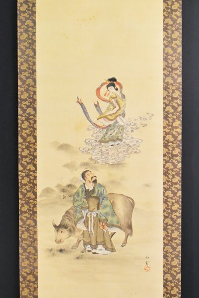 > K6167 真作 白雲「七夕 織姫 彦星」絹本 鬼頭道恭識箱 肉筆 天女 天人 人物画 日本画 中国 書画 絵画 掛軸 掛け軸 茶掛 古美術