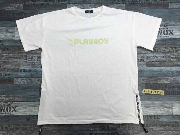 > PLAYBOY プレイボーイ BUNNY メンズ ロゴ刺繍 プリント 半袖Tシャツ FREE 白